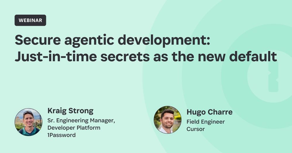 Weâre hosting a webinar for developers to learn how Cursor and 1Password eliminate the need for hardcoded secrets. Learn how to code with just-in-time access, runtime injection, and secure, AI-powered development workflows.
