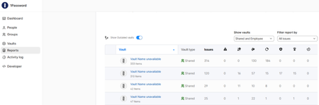 Hi, I configured my CISO in th Security group to give him rights to view the reports. That's OK. Unfortunately, in the report, shared vaults appears as "Vault Name unavailable" as indicated below. ...