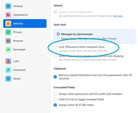 Disabling the "lock 1password when computer locks" toggle organization wide