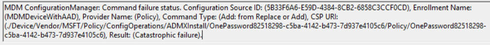 (./Device/Vendor/MSFT/Policy/ConfigOperations/ADMXInstall/OnePassword82518298-c5ba-4142-b473-7d937e4105c6/Policy/OnePassword82518298-c5ba-4142-b473-7d937e4105c6), Result: (Catastrophic failure).