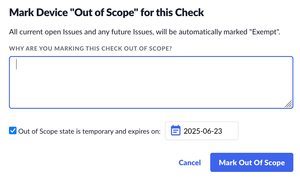 In Kolide, it would be great if we could combine the exemption and mark out of scope features. Right now, users can request an exemption and that exemption is permanent. But very often when a user ne...