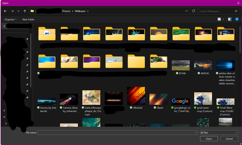 Result: The file picker window appears but the thumbnails in that window never load. Here's an example with a folder of random pictures: