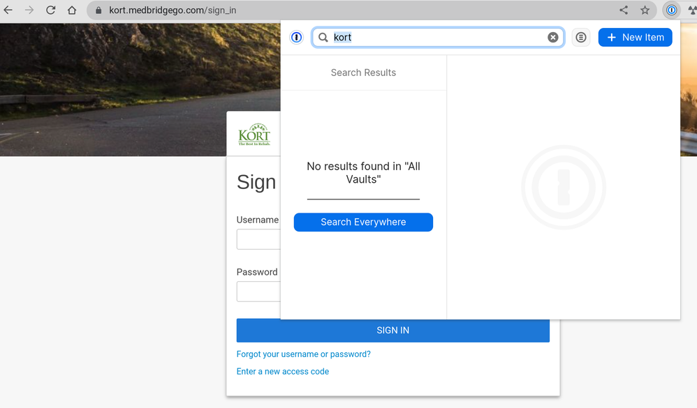 I opened the 1Password site and discovered my Kort info was saved in Private. I assume that is why it didn't appear even via Search?