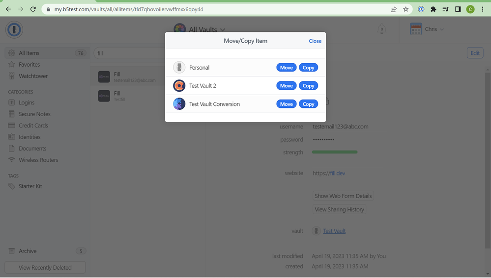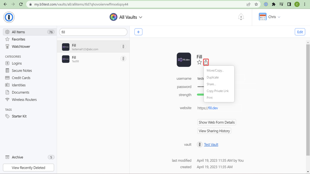 On a separate note, thanks for the info on how to move an item to another vault. It is not intuitive to use the share icon to do such a thing! I think that should be user tested - you would find it's not a good choice for what that icon represents! :)