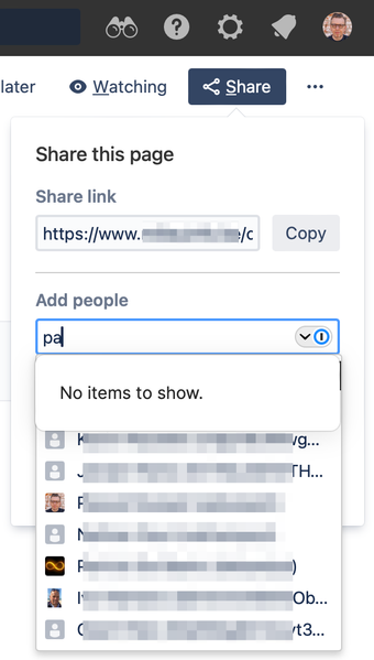 As seen in the picture, 1P unnecessarily pops-up when looking for a user to share a page in Confluence Server (iow, not the cloud version).