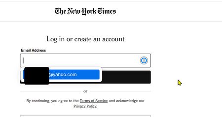 I'm using the latest Chrome extension, and I attached a screenshot that displays the problem. When I log into nytimes.com, 1P fills in my email address as mailto:xyz@yahoo.com. The problem is that th...