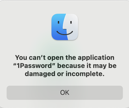 I'm sorry that you ran into an error message when using 1Password, thanks for reporting the issue and for letting us know that you were able to resolve things by reinstalling 1Password. I'll keep an eye out for further reports from others.