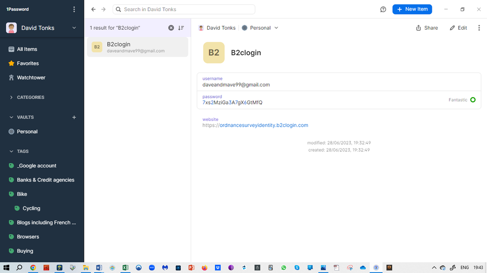 I then filled in my details and used the 1Password icon to save them.This is now available in 1Password (screen dump below):-