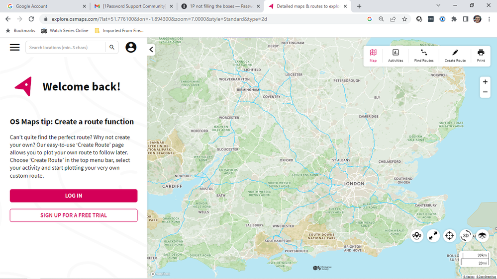 In Google I typed 'Ordnance Survey maps on line log in', and from the options, selected:-