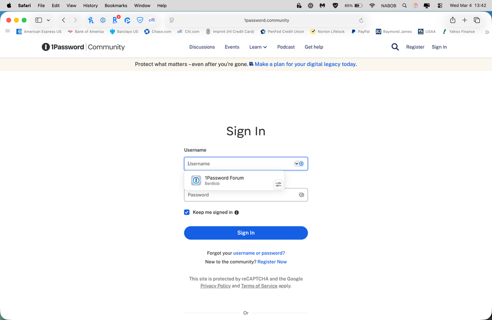1P Won't Fill Credentials