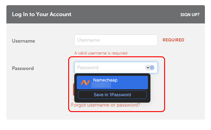 Hey, I have been struggling to get 1Password to detect the username field on the Namecheap Login Page (other than the homepage of Namecheap). I head to this URL because it opens up my hosting list instantly for quicker access on a regular bases.