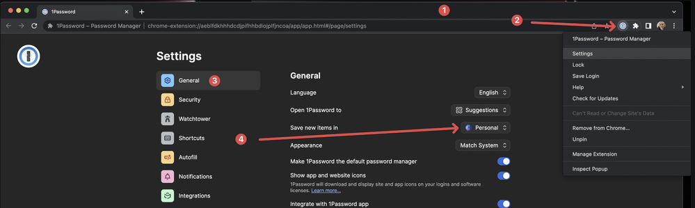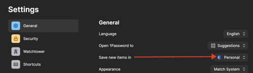 Done. :) Have you also tried configuring the saving vault within 1Password in the browser? That may help as they save new data? Right-click on the browser toolbar icon and select settings and in the General tab you'll see the option.