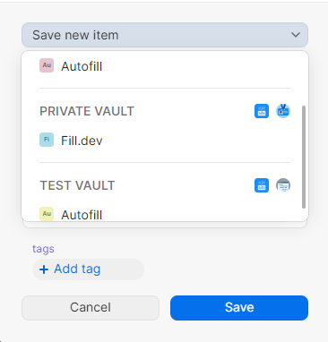 When saving updated passwords, are you offered the option to save a new item, or update an existing item in the dialog box? For example: