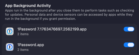 1Password 8 Background Activity apps