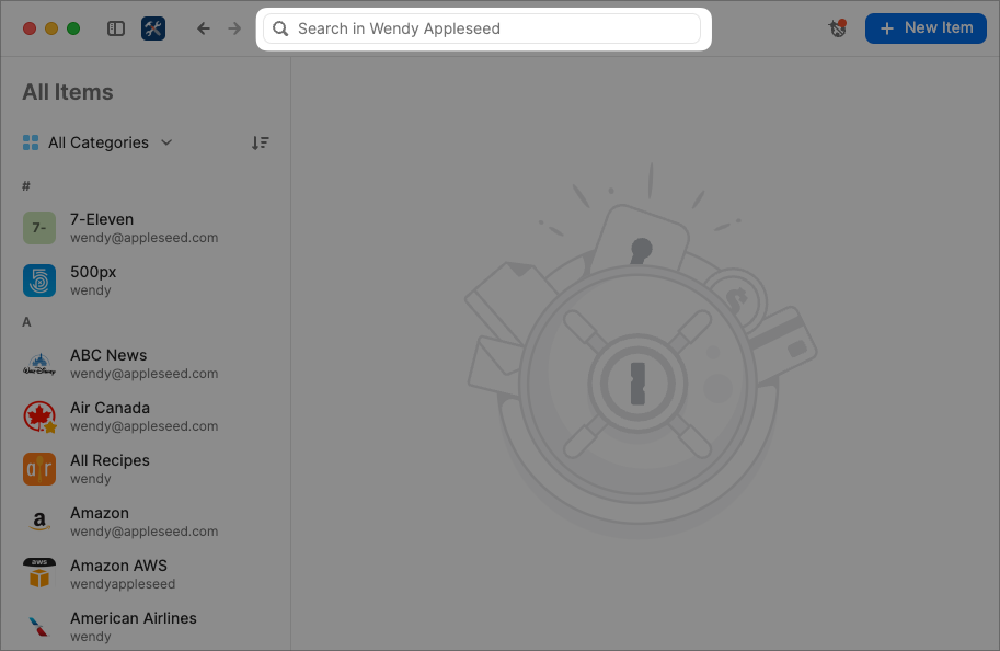 the movement of Search to the left pane — if it is even visible which it’s not if the left pane is minimized! Yes, I know that Cmd-F will bring up search, but that is still an extra step compared to 1Password 7 and prior.