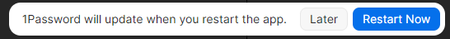 About two weeks ago I found that 1Password was prompting when I open the Windows app that I had an update: