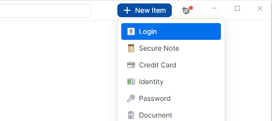 Ctrl+Nto open the New Item selector pane, and put focus on the first option in the list (Login) - similar to what I've shown in the screenshot below?That way, you can hit