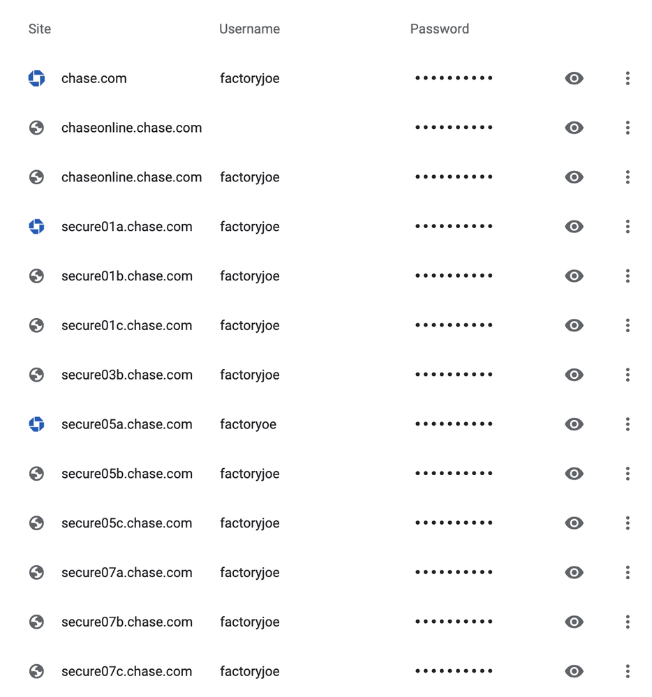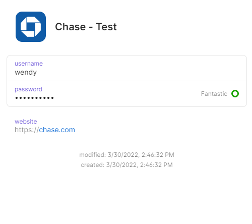 Include just your Chase username, password, and the URL to fill in. Navigate to that page again and try filling using your new test Login. Let me know how that goes!