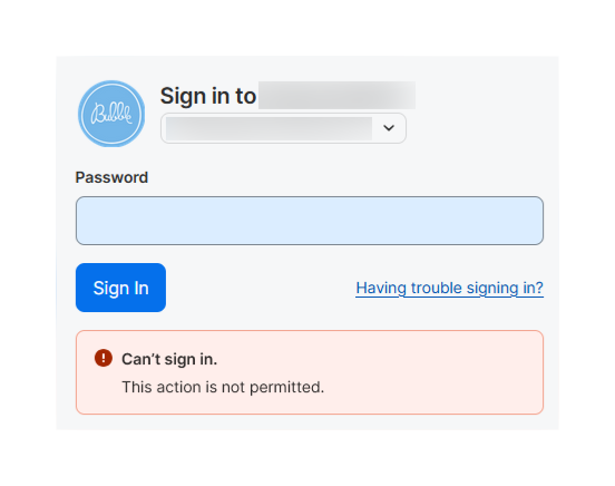 1Password autofilled signin: Can’t sign in. action not permitted, Missing user, unexpected error