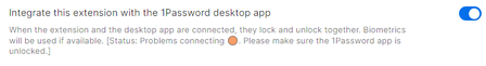 The integration between the desktop app and the browser extension is no longer working. When I check the box in the 1Password extension settings to Integrate this extension with the 1Password deskto...