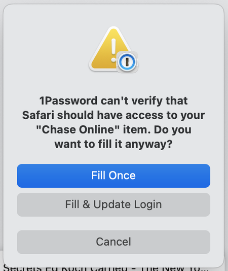 "1Password can't verify that Safari should have access to your item"
