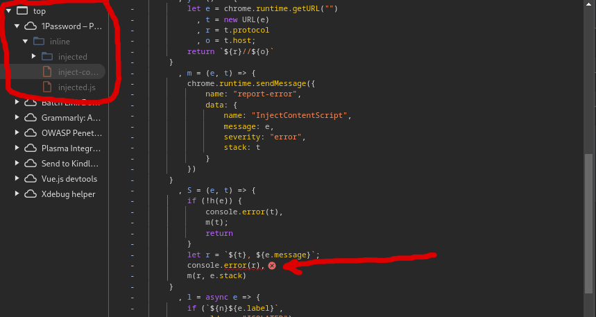I'm sorry that you're seeing an unexpected error message in the console when using 1Password. The error message that you've reported matches a known issue that our developers have recently released a fix for in version 8.10.58 of 1Password in the browser. Please update: