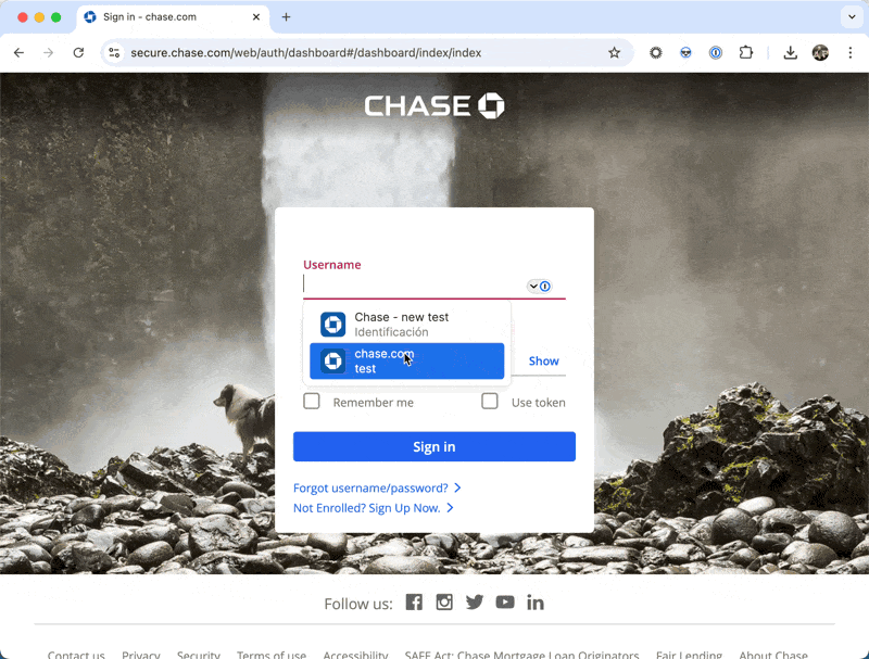 chase.com(not secure.chase.com) - Try to fill your login into the login form on the homepage.