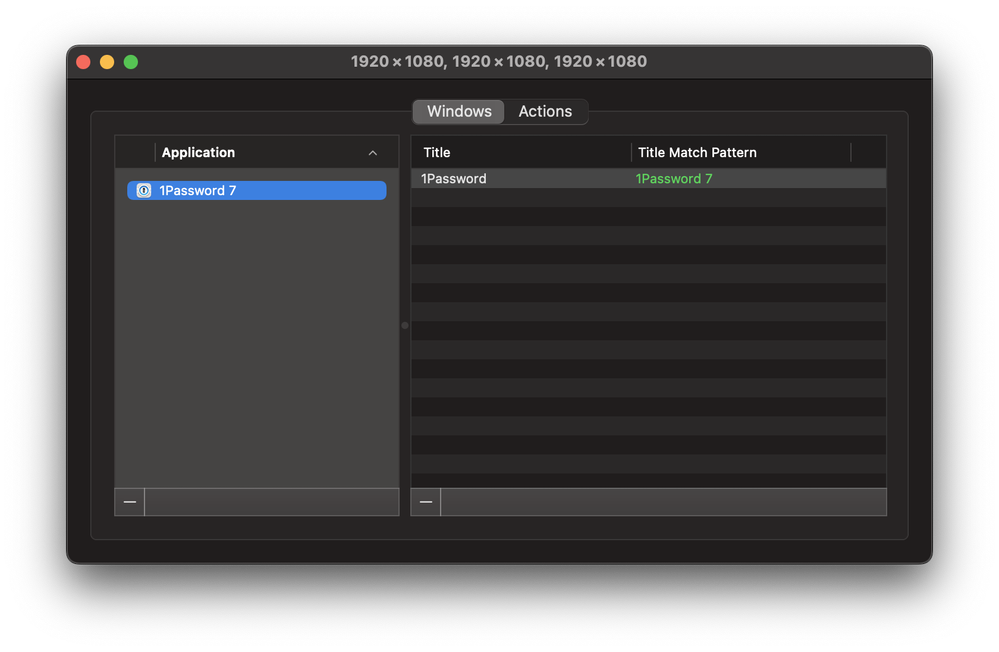 Try opening Stay > edit stored windows and then click the pencil. Set the following for 1Password 7. Does that help? If not, it might be time to touch base with the apps developer.
