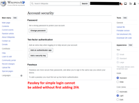 - Note that Wikipedia first requires a security key set as a prerequisite for a passkey.