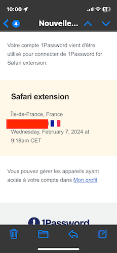 1password envoi un mail sur ios a chaque ouverture de Safari.
