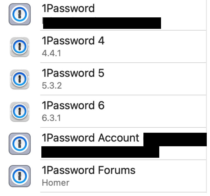 4 years agoOne last question. Prior to doing the export I thought I'd go through 1Password and delete things that may no longer be relevant and I came across these (screenshot). I'm assuming that the 1Password 4, 1Password 5 and 1Password 6 can be deleted. But just out of curiosity, where did these entries come from?