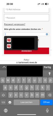 when using Safari on iOS to login on https://kartenwelt.rewe.de/ during checkout, the 1P autofill menu is blocking the CAPTCHA image as soo as the field has the focus. This looks like this:...