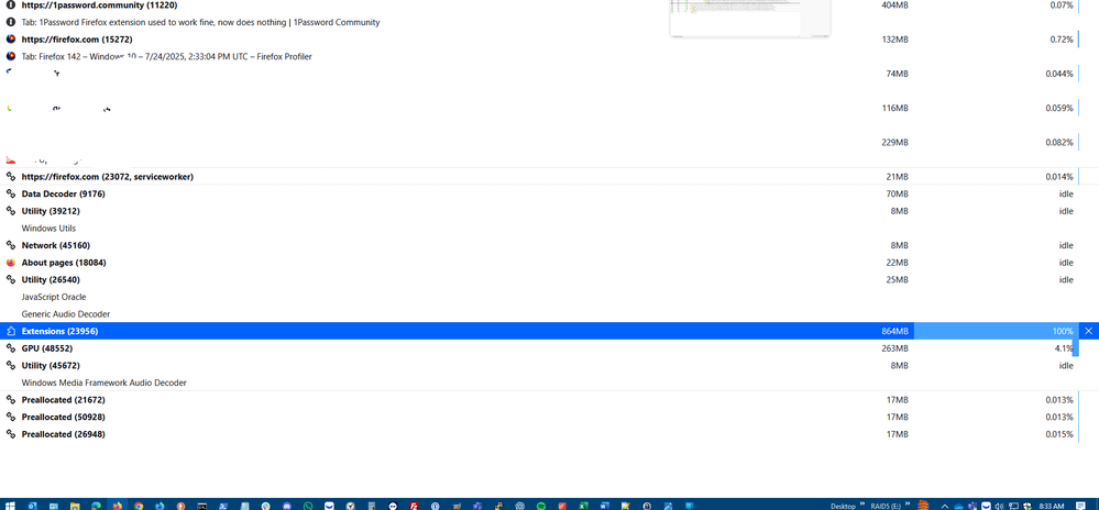 Our developers have fixed an issue where the 1Password browser extension could become unresponsive in Firefox and cause abnormally high CPU usage. Please update to the latest version (8.11.4.27):