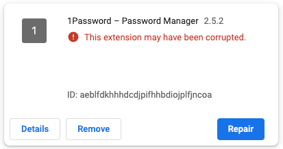 3 years ago1Password for Chrome: "This extension might have been corrupted"