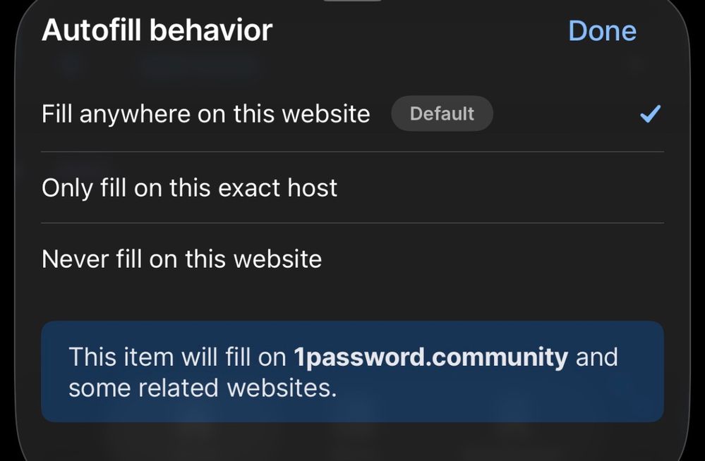 1Password for Safari 8.12.6 picks wrong default entry to autofill