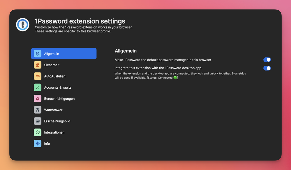 1Password for Mac (Desktop app) works fine. De-activated extention / reboot does not help...