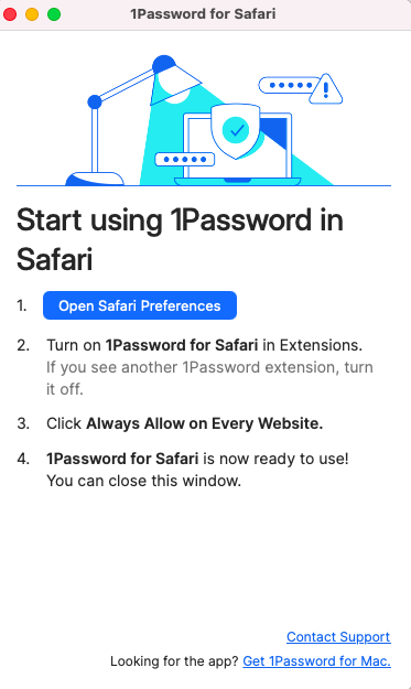5 years ago1Password for Safari not showing in browser extension preferences