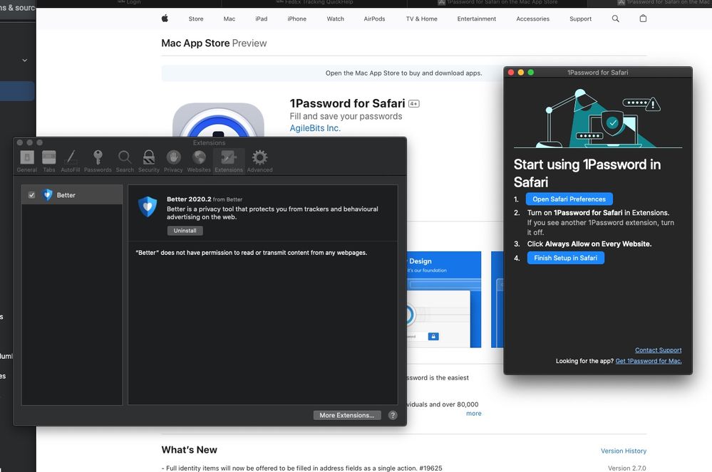 I fire up 1Password for Safari, which said to "Open Safari Preferences" and "Turn on 1Password for Safari in Extensions -- but I'm not seeing any 1Password Extension in Safari Extensions.