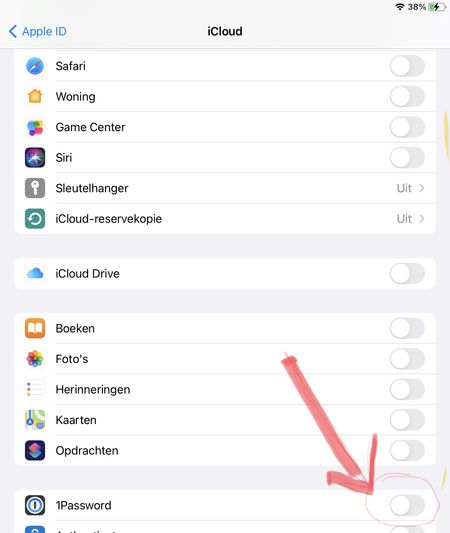 When checking the icloud settings after the update, “1password” was enabled under iCloud settings.
