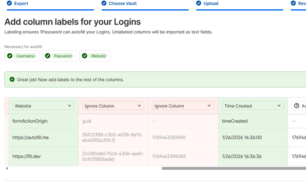 1password import from firefox csv: missing creation and last usage date