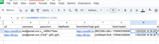 First, Firefox exports dates in Unix epoch time, so this information will need to be converted into something more readable. You can do this with a formula in a spreadsheet such as =(cell/86400000)+25569+(-5/24), or using something like the EPOCHTODATE function in Sheets (I believe EPOCHTODATE(cell,2) in this case). As your export likely contains unencrypted information, I would recommend using an offline method to convert the dates that is not backed up, and ensuring any copies are fully deleted after being imported into 1Password. You could also consider separating the dates from any sensitive information before converting them.