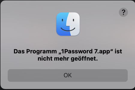 Das Programm "1Password 7.app" ist nicht mehr geöffnet. (In English like: The program "1Password...