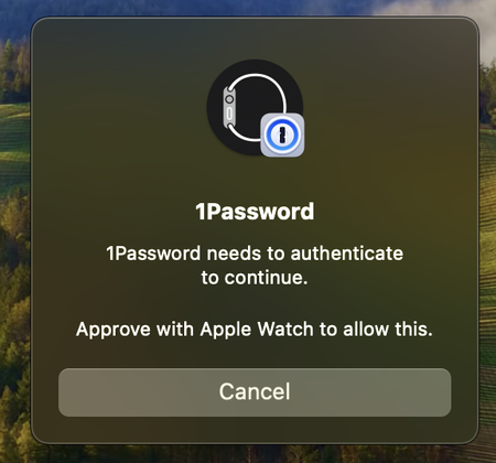 I've been seeing this pop up recently after unlocking with TouchID but then nothing happens on my watch and I'm unable to use 1Password. I have to cancel and then use my password to unlock ea...