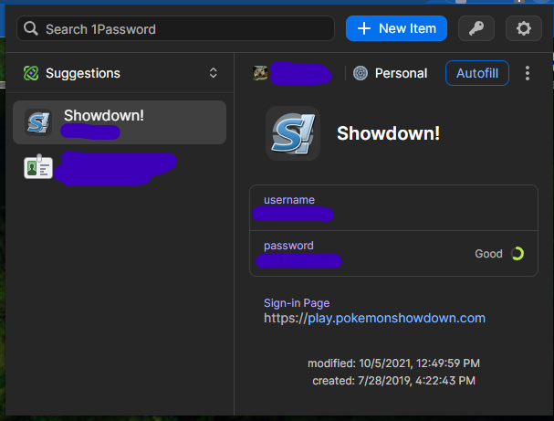 - play.pokemonshowdown.com - previously recommended my only login for this website (not sure why my identification record that was created with my 1Password account shows here. It doesn't have this website stored in it).