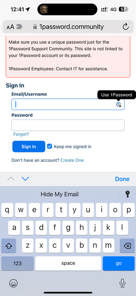When I click on the 1P icon in the username field, I get the faceid unlock confirmation but the icon continues to show the lock symbol and if I touch it again to it does the faceid unlock again. It d...