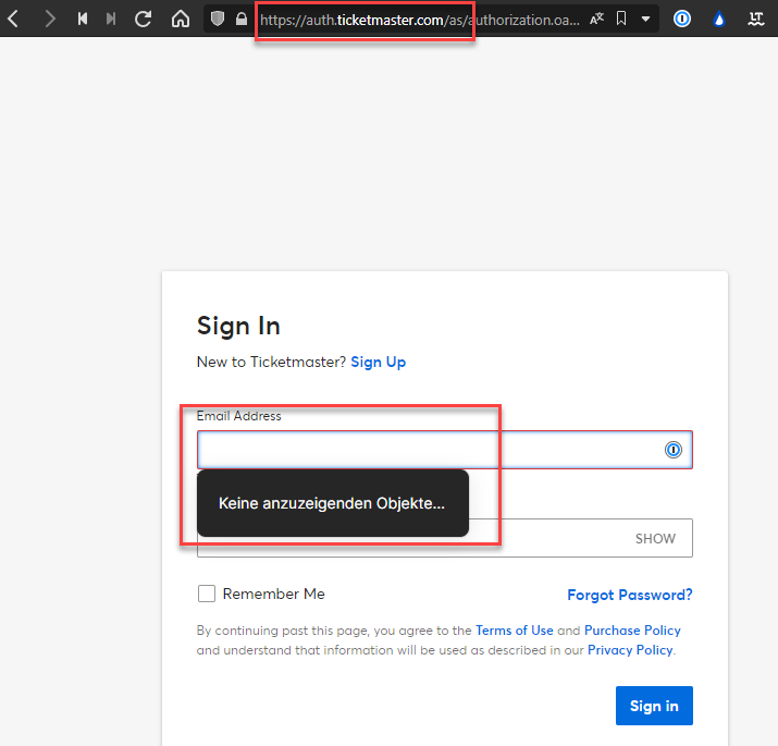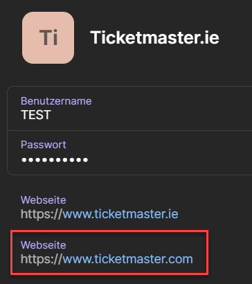 But I had to add the websitehttps://www.ticketmaster.cominto the entry and had to autofill with the help of the extension.First try without the added URL: