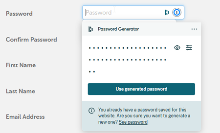 1Password password generator from the browser extension : change settings on the fly