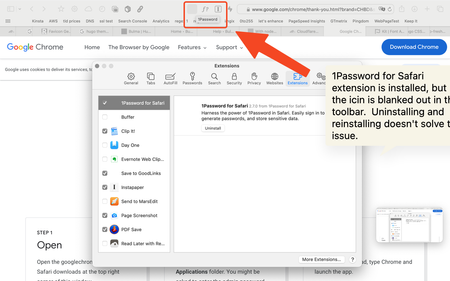 2 years ago1Password Safari extension icon blanked out in toolbar
