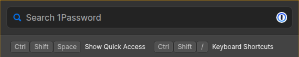 Open Quick Access 1password --quick-access Ctrl + Shift + Space
