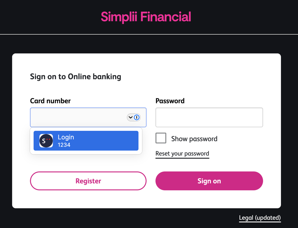 1Password will not auto populate the username into Simplii Financial. Once I copy and paste the username into the field, 1Password will auto populate the password. I never had issues before Simplii u...